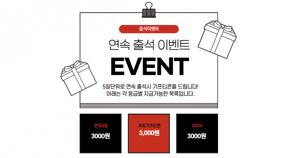 5일단위로 연속 출석시 기프티콘을 드립니다!