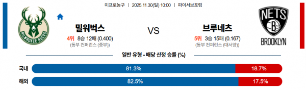 11월 30일 NBA 밀워벅스 vs 브루네츠