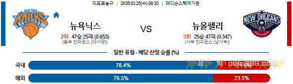 농구 분류 2026-03-25 08:30 NBA 뉴욕 닉스 vs 뉴올리언스 펠린컨즈 작성자 정보 꿀픽 작성 작성일 2026.03.24 22:09 컨텐츠 정보 190 조회 목록 답변 게시물 옵션 글검색 본문 0 추천 0 비추천 관련자료 이전 2026-03-25 19:00 KBL 서울 SK vs 고양 소노 작성일 2026.03.24 22:09 다음 2026-03-25 09:00 NBA 클리블랜드 캐벌리어스 vs 올랜도 매직 작성일 2026.03.24 20:51 댓글 0개 / 1페이지 최신순 과거순 최신순 등록된 댓글이 없습니다. 1(current) 새로운 댓글 확인 Select File Upload File 목록 답변 게시물 옵션 글검색