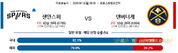 농구 분류 2026-04-13 09:30 NBA 샌안토니오 스퍼스 vs 덴버 너겟츠 작성자 정보 꿀픽 작성 작성일 2026.04.13 04:49 컨텐츠 정보 179 조회 목록 답변 본문 0 추천 0 비추천 관련자료 이전 2026-04-13 09:30 NBA 댈러스 매버릭스 vs 시카고 불스 작성일 2026.04.13 06:30 다음 2026-04-13 07:00 NBA 필라델피아 76ERS vs 밀워키 벅스 작성일 2026.04.13 04:49 댓글 0개 / 1페이지 최신순 과거순 최신순 등록된 댓글이 없습니다. 1(current) 새로운 댓글 확인 Select File Upload File 목록 답변