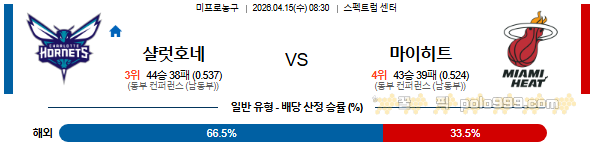 농구 분류 2026-04-15 08:30 NBA 샬럿 호네츠 vs 마이애미 히트 작성자 정보 꿀픽 작성 작성일 2026.04.15 18:23 컨텐츠 정보 180 조회 목록 답변 게시물 옵션 글검색 본문 0 추천 0 비추천 관련자료 이전 2026-04-15 11:00 NBA 피닉스 선즈 vs 포틀랜드 트레일블레이저 작성일 2026.04.15 18:23 다음 2026-04-15 19:00 WKBL 삼성생명 vs 하나은행 작성일 2026.04.15 17:09 댓글 0개 / 1페이지 최신순 과거순 최신순 등록된 댓글이 없습니다. 1(current) 새로운 댓글 확인 Select File Upload File 목록 답변 게시물 옵션 글검색