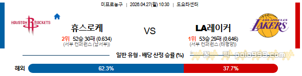 농구 분류 2026-04-27 10:30 NBA 휴스턴 로켓츠 vs LA 레이커스 작성자 정보 꿀픽 작성 작성일 2026.04.26 20:48 컨텐츠 정보 164 조회 목록 답변 게시물 옵션 글검색 본문 0 추천 0 비추천 관련자료 이전 2026-04-27 02:00 NBA 토론토 랩터스 vs 클리블랜드 캐벌리어스 작성일 2026.04.26 20:48 다음 2026-04-26 14:00 KBL 안양 정관장 vs 부산 KCC 작성일 2026.04.26 00:49 댓글 0개 / 1페이지 최신순 과거순 최신순 등록된 댓글이 없습니다. 1(current) 새로운 댓글 확인 Select File Upload File 목록 답변 게시물 옵션 글검색