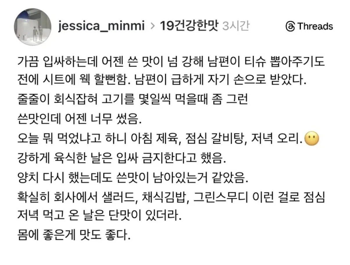 몸에 좋은게 맛도 좋다. 작성자 정보 안정구화 작성 작성일 2026.04.10 03:46 컨텐츠 정보 161 조회 목록 답변 글쓰기 본문 몸에 좋은게 맛도 좋다. 0 추천 0 비추천 관련자료 이전 위고비 마운자로 맞고 배에 구멍난 썰 작성일 2026.04.10 03:48 다음 가슴 큰 여자들이 억울하다는 상황 작성일 2026.04.10 03:46 댓글 0개 과거순 과거순 최신순 추천순 비추천순 등록된 댓글이 없습니다. 1(current) 새로운 댓글 확인 Select File Upload File 목록 답변 글쓰기