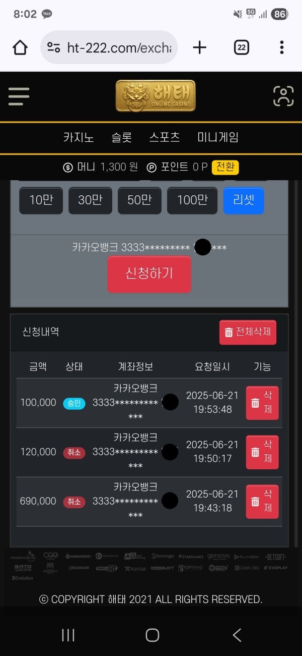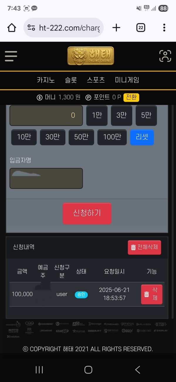 해태 먹튀사이트 21일 해태 사이트에서 10만원 충전하고 롤링도 거의 1000프로