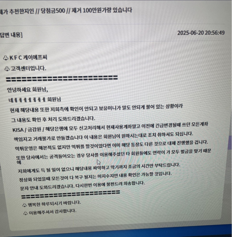 저와 지인 KFC에서 650만원 먹튀당했습니다