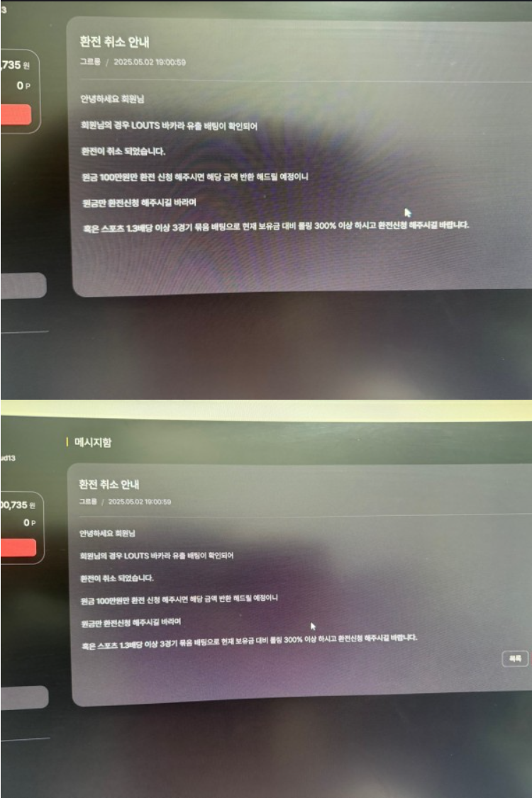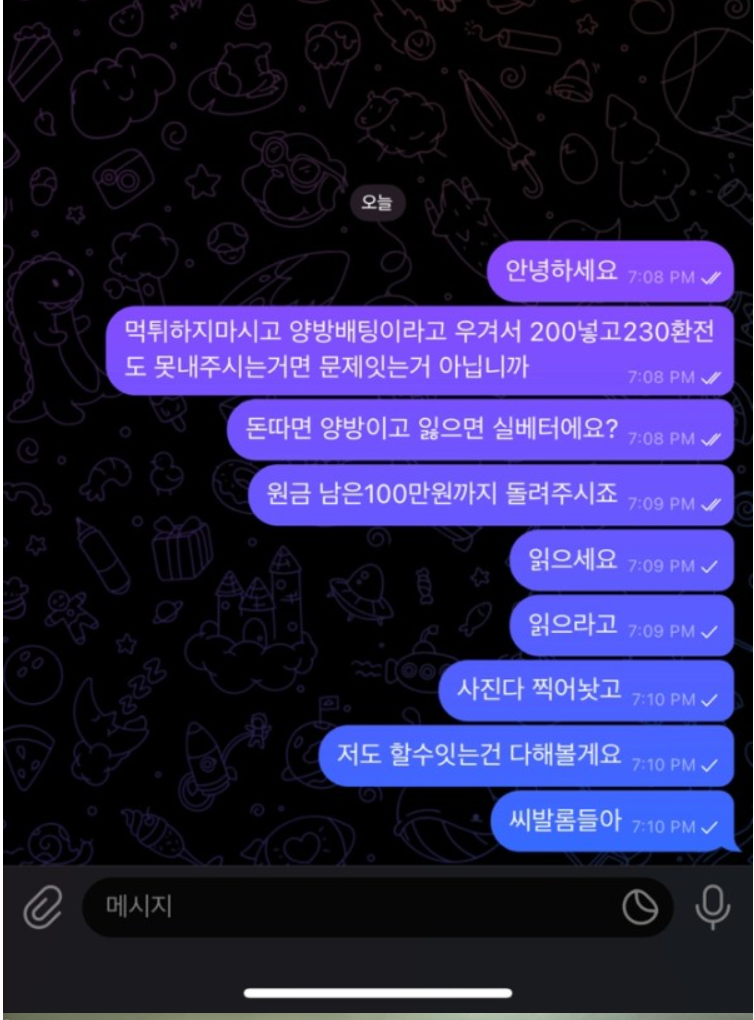 양방배팅이라고 원금100만원만 환전하라네요 ㅋㅋㅋㅋ