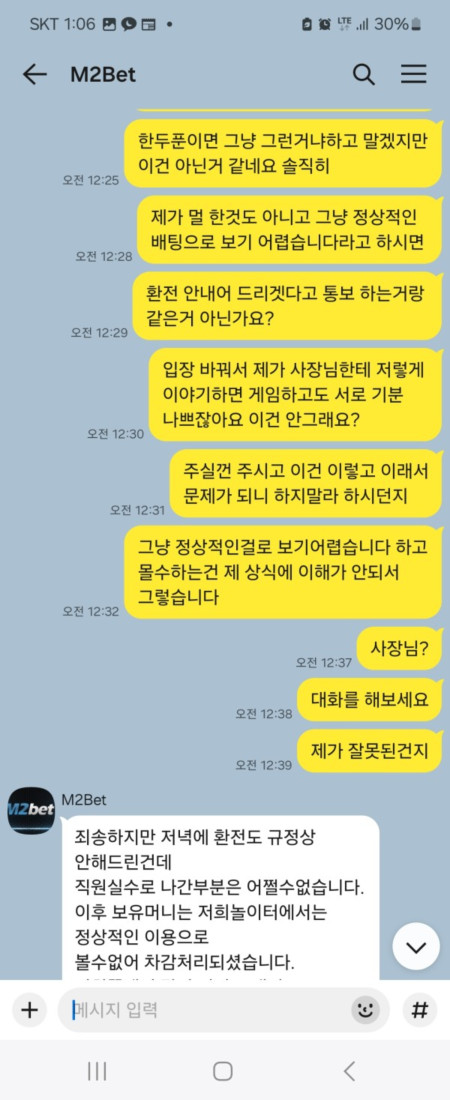 무슨 내용도 없이 다짜고짜 미니게임 밸 런스 언급하면서 정상적인 배팅으로 볼수없다고 몰수한다고 하고 아이디 짤라 버리네요