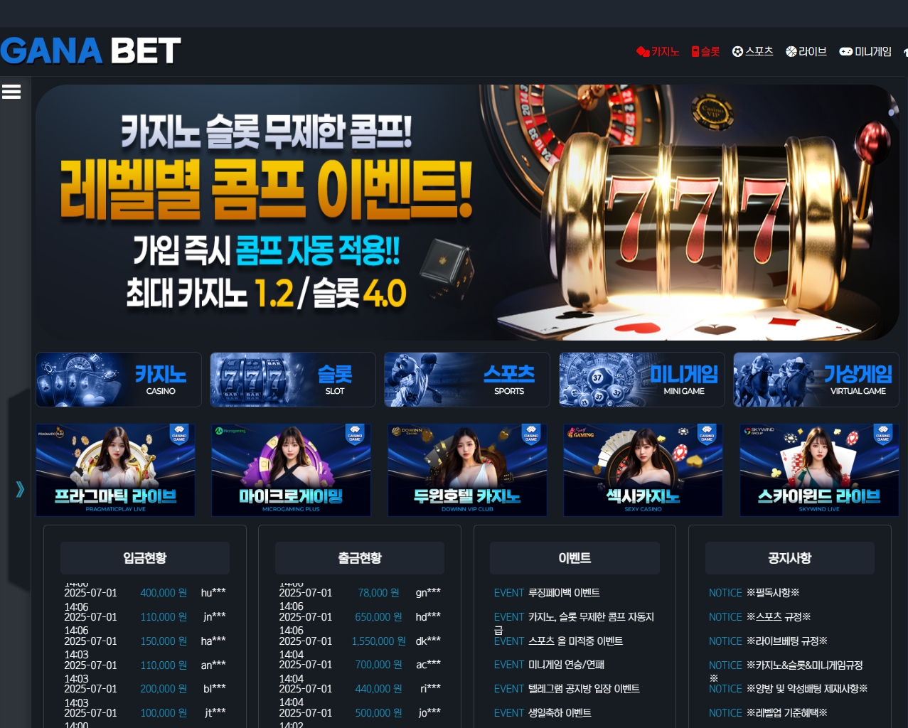 가나벳은 2025년 2월 20일 도메인을 개설하여 운영을 시작한 신규 토토 및 카지노 사이트입니다. 피해 회원은 여러 커뮤니티에서 노출된 광고를 보고 큰 의심 없이 사이트에 가입하였고, 일정 금액을 충전한 뒤 미니 게임을 이용해 약 200만 원가량의 수익을 얻었습니다.