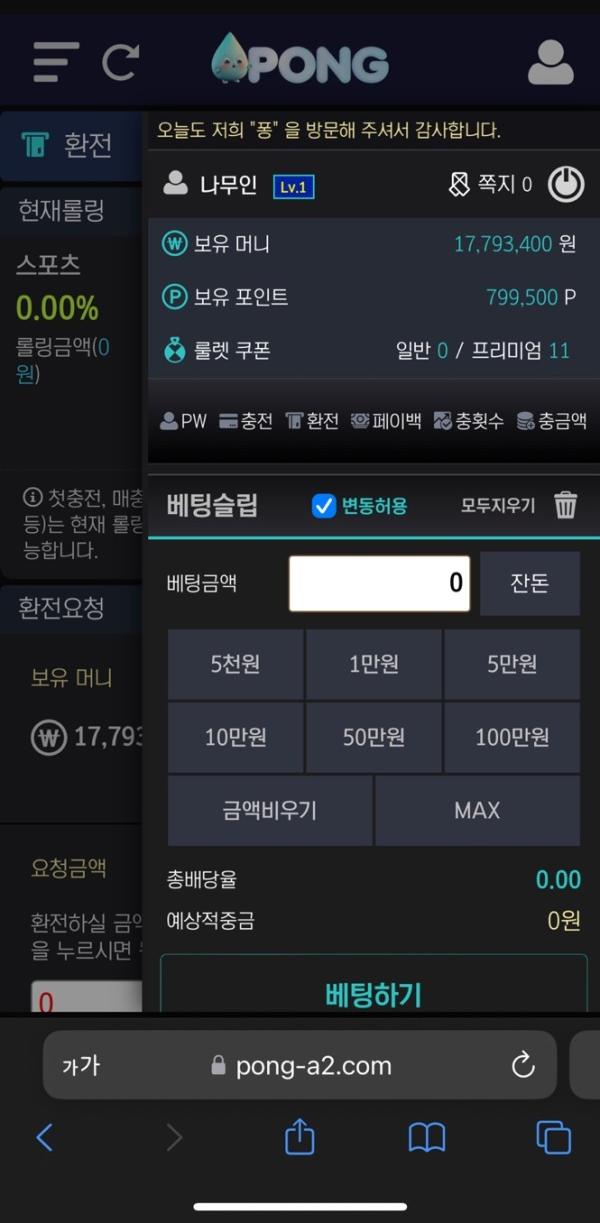 환전 이후에 롤링을 또 채워야 하고 , 1레벨은환전이 1하루에 500만원이 최대라 해서