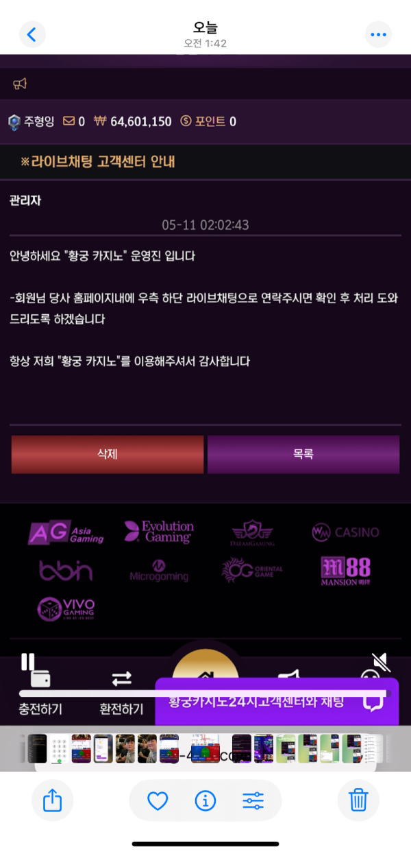 황궁 카지노 먹튀입니다 2천 죽고 좀 따니까 전액 환전해달라더니 갑자기 고센연락해달라거해서 하니까 바로 차단 텔레 차단이네요 황궁 이부장 환전 걱정하지말라더니 ㅎㅎ 22분동안 베팅 및 먹틔 실시간 영상 보유중입니다 도와주실수있으신분들 연락주세용