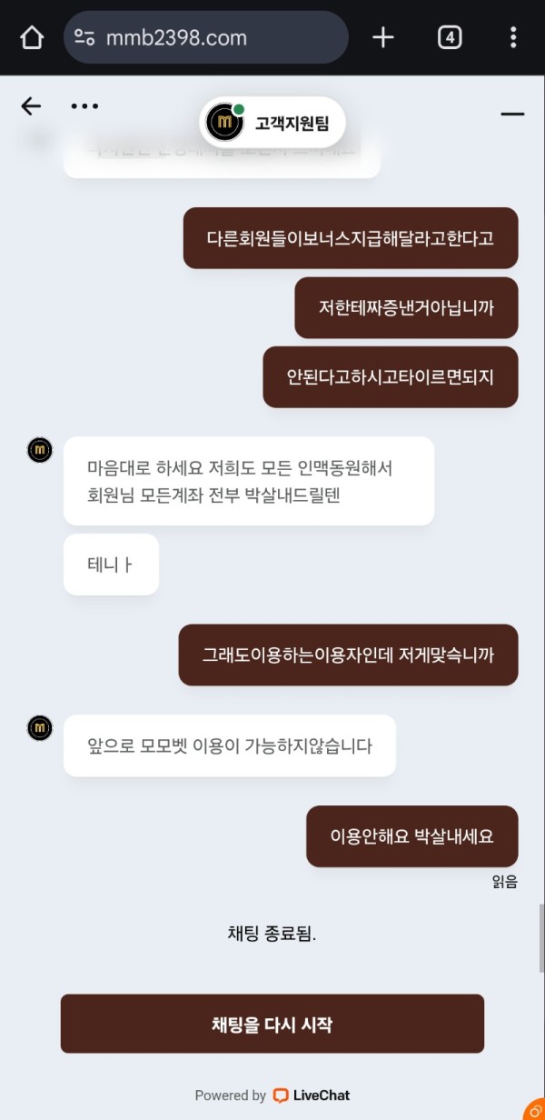 모모벳먹튀 강제탈퇴시킴 절대이용하지마세요 작성자 정보 낭낭이다 작성 작성일 2025.08.03 07:36 컨텐츠 정보 496 조회 목록 답변 글쓰기 본문 사이트명 모모벳 사이트주소 https://mmb2398.com/ 피해금액 100 만원 피해내용 먹튀금 100만 증거사진 0 추천 2 비추천 관련자료 이전 베팅 걸어 놓고 한눈팔면 야금야금 먹튀 하는 징기스칸 작성일 2025.08.05 17:19 다음 탄 작성일 2025.08.01 11:36 댓글 0개 등록된 댓글이 없습니다. Select File Upload File 목록 답변 글쓰기 아이디 필수 비밀번호 필수 로그인 자동로그인 회원가입 정보찾기 공지 럭키라운지 공식 배너 안내 [럭키라운지 공식공지] 통협팀 관련 주의사항 안내 럭키라운지 온라인 먹튀검증 커뮤니티 꽁머니교환 지급보류 등 안내사항 [필독] 2025년 럭키라운지 보증업체 제휴종료 리스트 럭키라운지 이벤트 등록일 25.10.11 이벤트연속 출석 이벤트 등록일 25.07.28 이벤트럭키라운지 지인추천 이벤트 등록일 25.07.28 이벤트기프티콘 교환 등록일 25.07.16 이벤트먹튀사이트 제보시 15,000P 지급! 등록일 25.07.01 이벤트럭키 라운지 기프티콘 지급 방식 – 레벨별 정리 새 글 새 댓글 등록일 12.08 [자유게시판] 건승하세요 등록일 12.08 [출석체크] 르네셜님의 출석체크 등록일 12.07 [일반홍보] 신뢰성⭐️최저가⚡️토토솔루션가격✅ 등록일 12.07 [출석체크] 드임네님의 출석체크 등록일 12.07 [자유게시판] 건승 등록일 12.06 [일반홍보] 신뢰성⭐️최저가⚡️토토사이트제작✅ 등록일 11.27 [자유게시판] 대박 등록일 11.27 [자유게시판] 건승 등록일 11.26 [자유게시판] ㄱㅅ 등록일 11.24 [자유게시판] 건승하세요 등록일 11.22 [자유게시판] 달리져 등록일 11.22 [자유게시판] 오바 레벨 랭킹 포인트 랭킹 길대박이쪽지보내기 자기소개 아이디로 검색 전체게시물쪽지보내기 자기소개 아이디로 검색 전체게시물 0 은둥이쪽지보내기 메일보내기 자기소개 아이디로 검색 전체게시물쪽지보내기 메일보내기 자기소개 아이디로 검색 전체게시물 0 샛터짱자쪽지보내기 메일보내기 자기소개 아이디로 검색 전체게시물쪽지보내기 메일보내기 자기소개 아이디로 검색 전체게시물 0 윤원홍상쪽지보내기 메일보내기 자기소개 아이디로 검색 전체게시물쪽지보내기 메일보내기 자기소개 아이디로 검색 전체게시물 0 보임훔안쪽지보내기 메일보내기 자기소개 아이디로 검색 전체게시물쪽지보내기 메일보내기 자기소개 아이디로 검색 전체게시물 0 도현노려쪽지보내기 메일보내기 자기소개 아이디로 검색 전체게시물쪽지보내기 메일보내기 자기소개 아이디로 검색 전체게시물 0 하홍신휴쪽지보내기 메일보내기 자기소개 아이디로 검색 전체게시물쪽지보내기 메일보내기 자기소개 아이디로 검색 전체게시물 0 구련복동쪽지보내기 메일보내기 자기소개 아이디로 검색 전체게시물쪽지보내기 메일보내기 자기소개 아이디로 검색 전체게시물 0 장진배회쪽지보내기 메일보내기 자기소개 아이디로 검색 전체게시물쪽지보내기 메일보내기 자기소개 아이디로 검색 전체게시물 0 최맹숙마쪽지보내기 메일보내기 자기소개 아이디로 검색 전체게시물쪽지보내기 메일보내기 자기소개 아이디로 검색 전체게시물 0 드끈달믄쪽지보내기 메일보내기 자기소개 아이디로 검색 전체게시물쪽지보내기 메일보내기 자기소개 아이디로 검색 전체게시물 475,850 럭키라운지쪽지보내기 메일보내기 자기소개 아이디로 검색 전체게시물쪽지보내기 메일보내기 자기소개 아이디로 검색 전체게시물 419,510 사콘반쪽지보내기 메일보내기 자기소개 아이디로 검색 전체게시물쪽지보내기 메일보내기 자기소개 아이디로 검색 전체게시물 308,350 길대박이쪽지보내기 자기소개 아이디로 검색 전체게시물쪽지보내기 자기소개 아이디로 검색 전체게시물 138,413 캄비세스쪽지보내기 메일보내기 자기소개 아이디로 검색 전체게시물쪽지보내기 메일보내기 자기소개 아이디로 검색 전체게시물 98,550 샛터짱자쪽지보내기 메일보내기 자기소개 아이디로 검색 전체게시물쪽지보내기 메일보내기 자기소개 아이디로 검색 전체게시물 97,394 달주민빛쪽지보내기 메일보내기 자기소개 아이디로 검색 전체게시물쪽지보내기 메일보내기 자기소개 아이디로 검색 전체게시물 66,000 빈은춘진쪽지보내기 메일보내기 자기소개 아이디로 검색 전체게시물쪽지보내기 메일보내기 자기소개 아이디로 검색 전체게시물 51,000 티비조쪽지보내기 메일보내기 자기소개 아이디로 검색 전체게시물쪽지보내기 메일보내기 자기소개 아이디로 검색 전체게시물 38,052 성백유양쪽지보내기 메일보내기 자기소개 아이디로 검색 전체게시물쪽지보내기 메일보내기 자기소개 아이디로 검색 전체게시물 37,000
