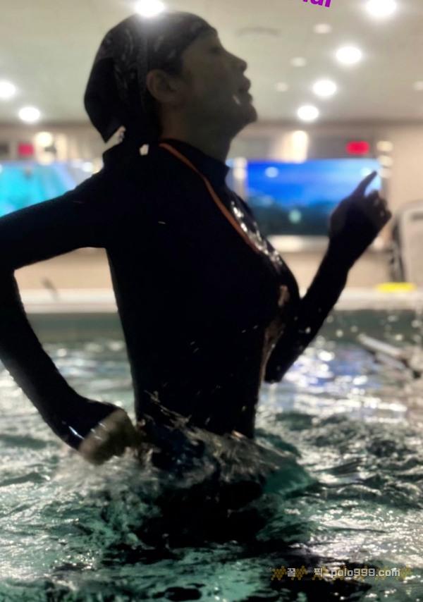 10일 김혜수는 자신의 인스타그램에 수영장에서 운동 중인 사진을 공개했다.